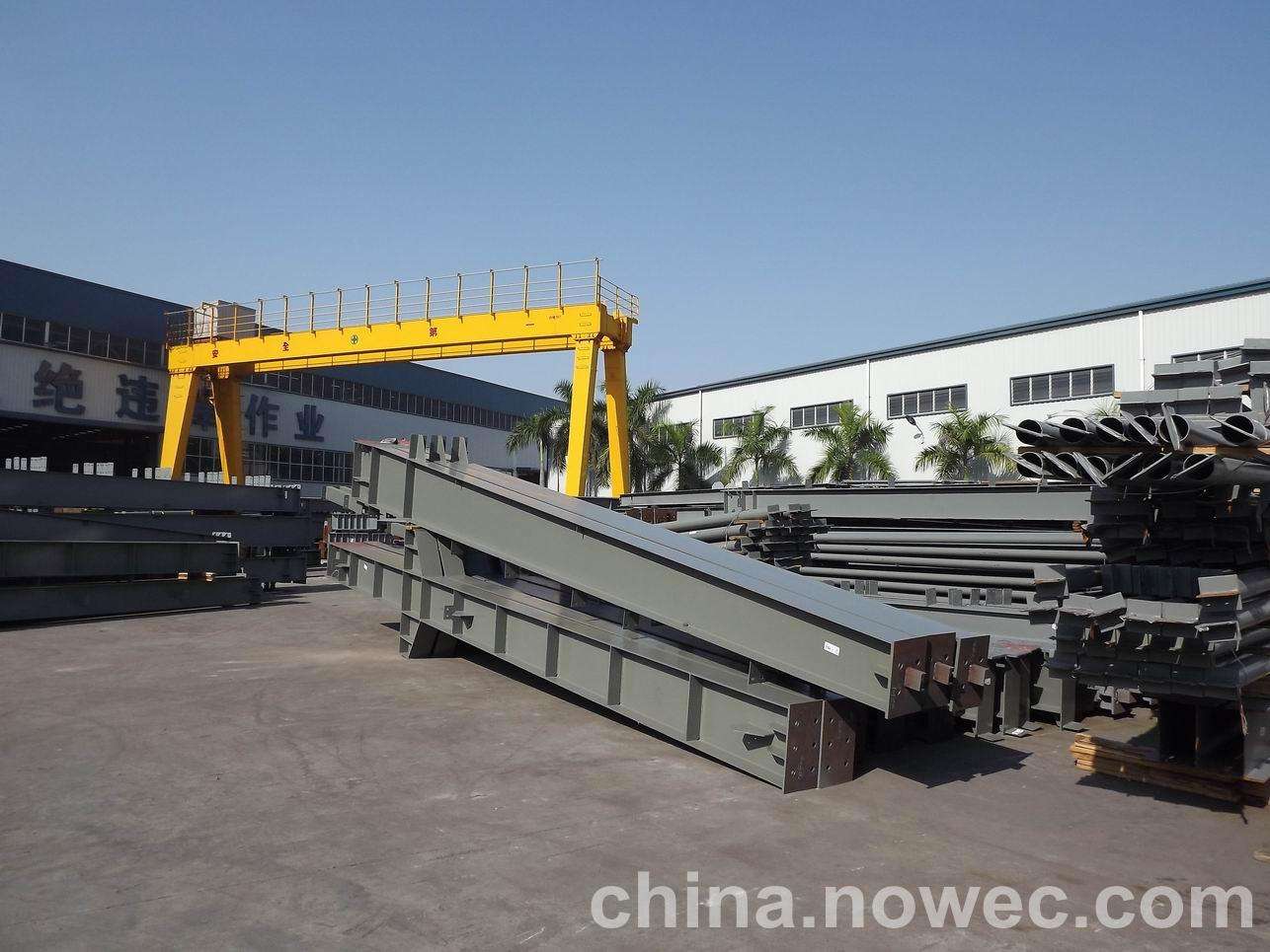 条状单元一般沿长跨方向分割,其宽度约为1~3个网格,其长度为l2或l2/2(l2为短跨跨距)。块状单元一般沿高碑店网架平面纵横向分割成矩形或正方形单元。每个单元的重量以现有起重机能胜任为准。条(块)与条(块)之间可以直接拼装,也可空一网格在高空拼装。由于条(块)状单元是在地面拼装,因而高空作业量较高空散装法大为减少,拼装支架也减少很多,又能充分利用现有起重设备,故较经济。这种安装方法适用于分割后网架的钢度和受力状况改变较小的各类中小型网架,如两向正交正放四角锥、正放抽空四角锥等网架。
